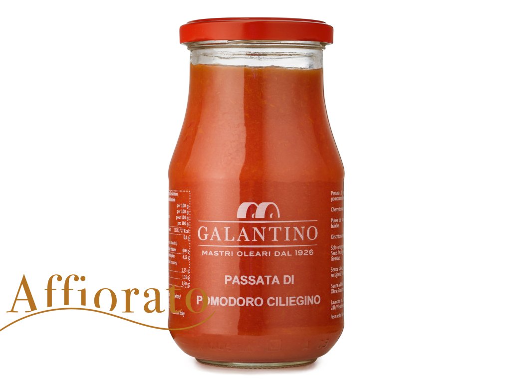 Hustý a krémový paradajkový pretlak vyrobený z čerstvých cherry paradajok pestovaných v Apúlii.